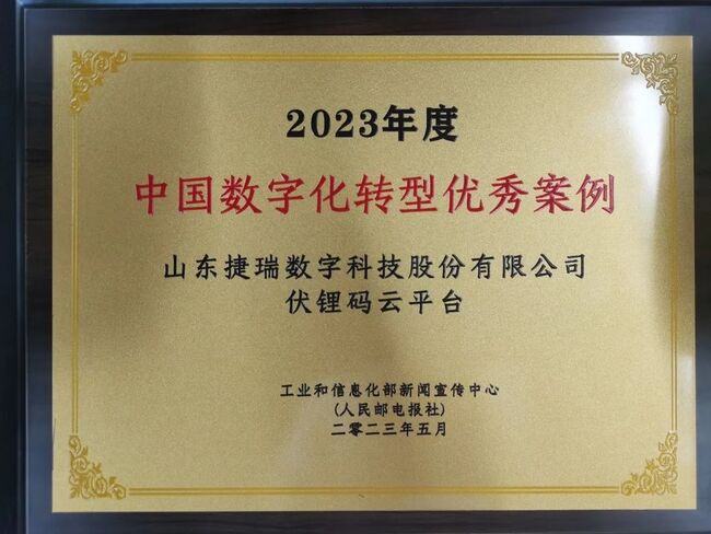 同時論壇還評選出2023年中國數字化轉型優秀案例,由捷瑞數字自主研發的伏鋰碼云平臺榮獲該項榮譽,以其精準數字化轉型解決方案推動數字經濟與實體經濟深度融合。
